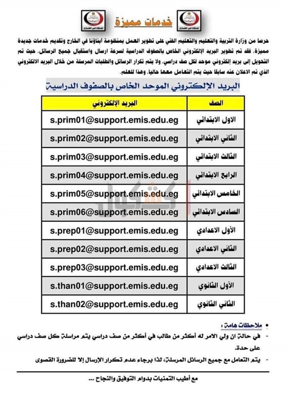 وأضاف أنه تم اعداد عدد (11) بريد الكترونى موحد لكل صف دراسي لسهولة التواصل المباشر، موضحا أنه لم يتم حتى الآن تحديد آلية الامتحانات لهذا العام (حضورياً أم لا).