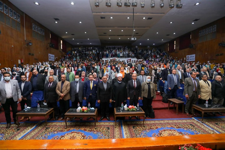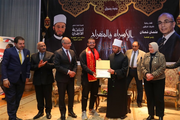 وذلك بحضور الدكتور عاطف حسين نائب رئيس الجامعة للتعليم والطلاب، والدكتورة جيهان يسرى نائب رئيس الجامعة لشئون خدمة المجتمع وتنمية البيئة، والدكتور أحمد عنانى وكيل كلية الطب للدراسات العليا والبحوث ومستشار رئيس الجامعة للأنشطة الطلابية، ولفيف من العمداء ووكلاء الكليات وأعضاء هيئة التدريس، والطلاب بقاعة المؤتمرات الكبرى باستاد الجامعة.