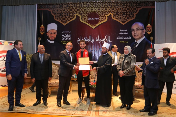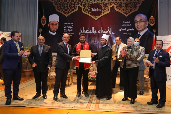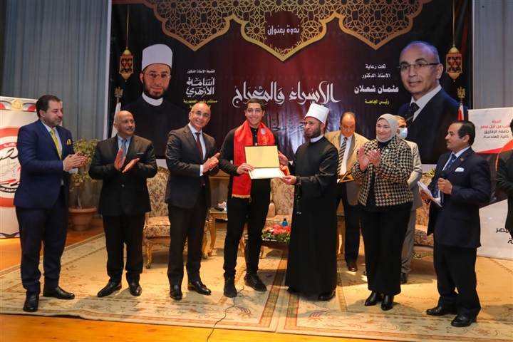 شهد الدكتور عثمان شعلان، رئيس جامعة الزقازيق، اليوم الأربعاء الموافق 2/3/2022م، الندوة التي تنظمها أسرة «طلاب من أجل مصر»، بمناسبة الاحتفال بذكرى الإسراء والمعراج تحت عنوان (الإسراء والمعراج المعجزة الخالدة)، وذلك بالتعاون مع الاتحاد العام للطلاب، والإدارة العامة لرعاية الشباب، والتى يحاضر فيها الدكتور أسامه الأزهري مستشار رئيس الجمهورية للشئون الدينية.