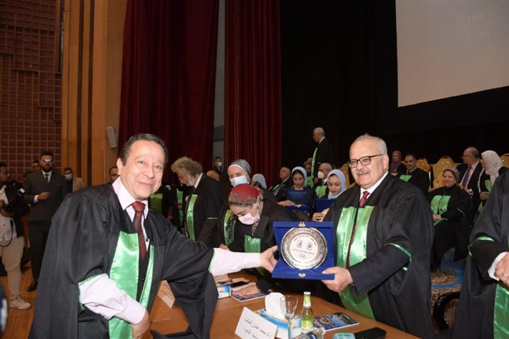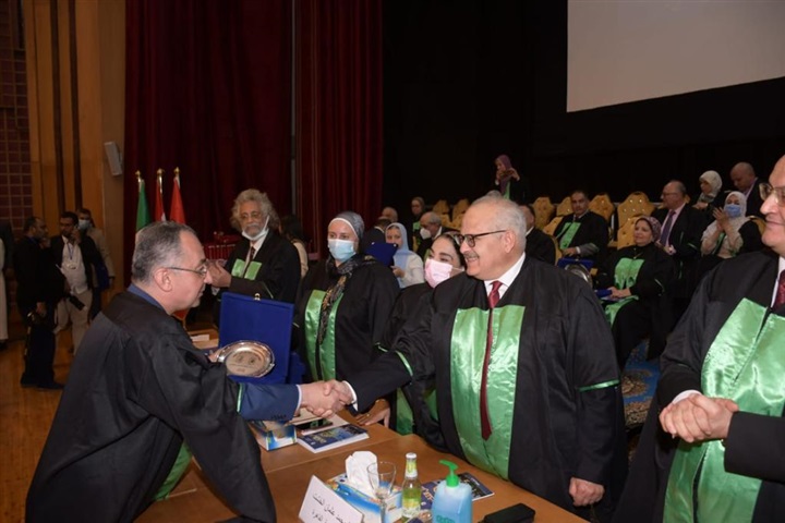 تكريم أعضاء هيئة التدريس، أعقبه ترديد الخريجين قسم الأطباء مع الدكتور حسين خيري