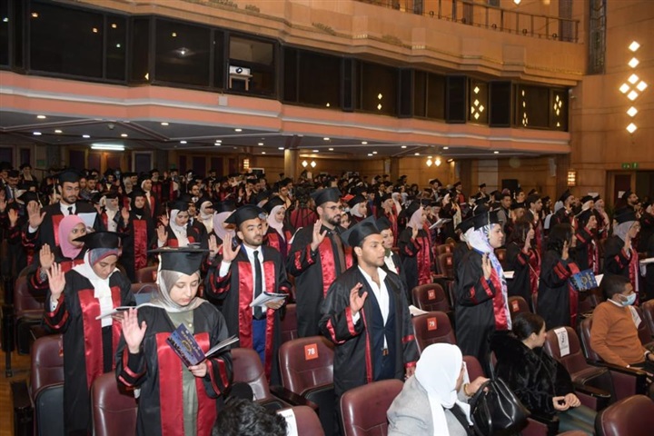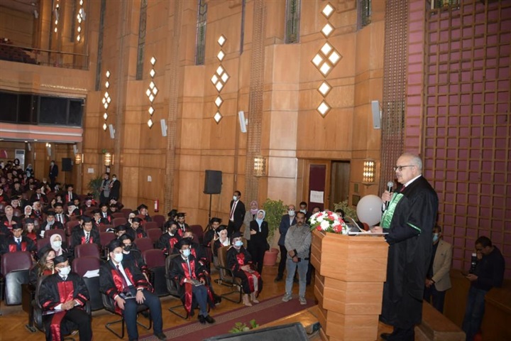 الدكتور حسين خيري الخريجين على بذل أقصى الجهود في مهنتهم وقام بتلاوة قسم الأطباء.
