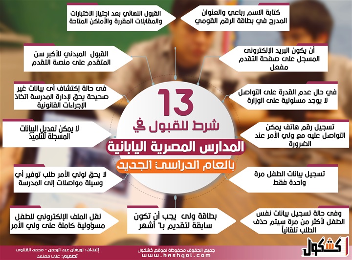 انفوجراف.. 13 شرط للقبول في المدارس المصرية اليابانية بالعام الدراسي الجديد