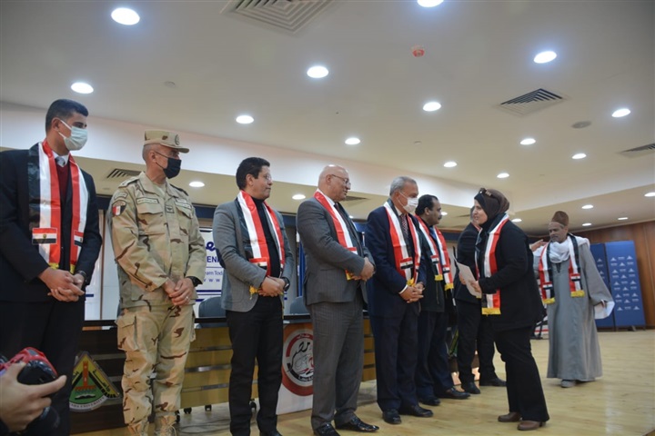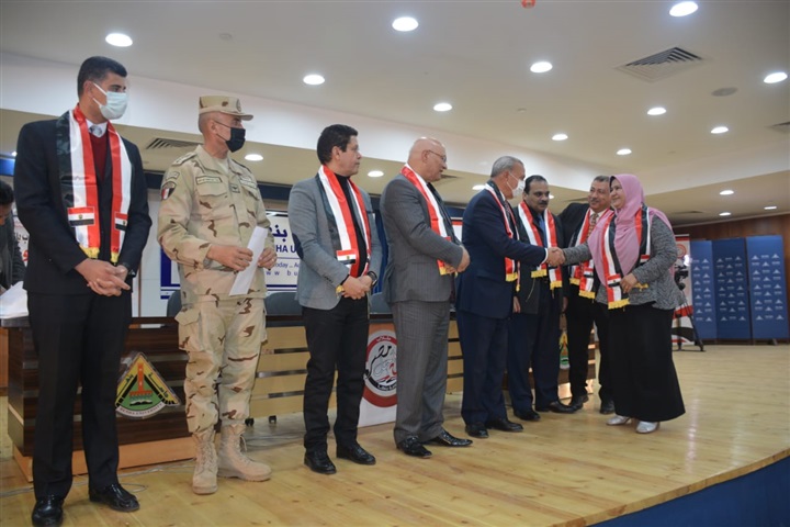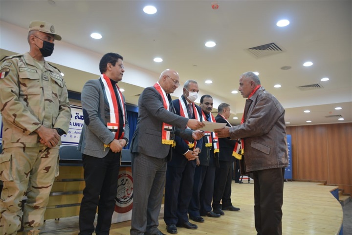 وفي نهاية الاحتفال كرم محافظ القليوبية يرافقه رئيس الجامعة ونواب رئيس الجامعة ونائب المحافظ، أسر الشهداء.