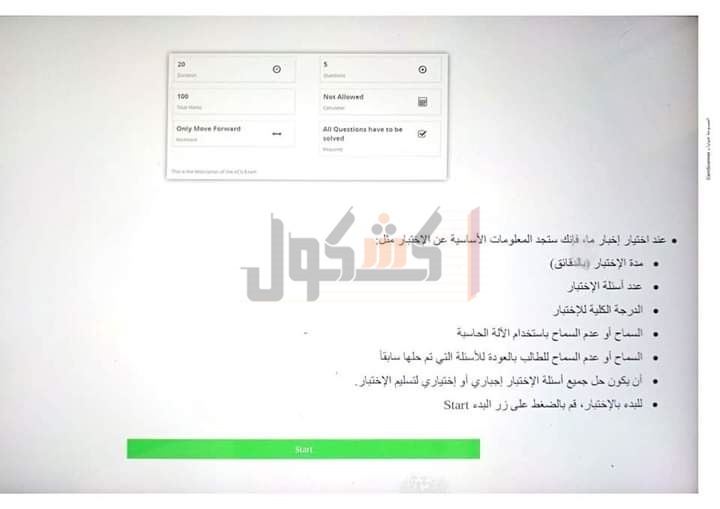 - يجب توفر القلم مع التابلت للإجابة على الأسئلة المقالية.