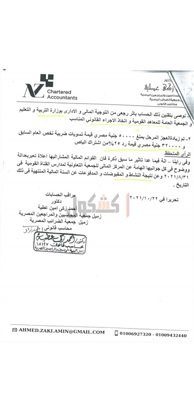 مفاجأة بتقرير مراقب الحسابات لمدرسة القناة القومية بالمعادي