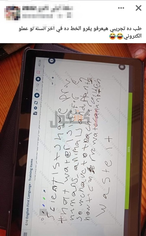 امتحان إلكتروني، هيعرفوا يقرأوا خطي".
