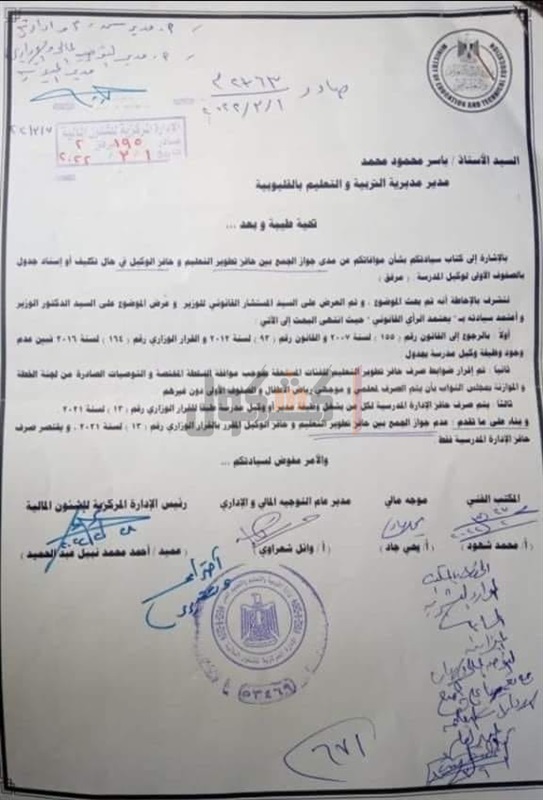كشف خطاب لوزارة التربية والتعليم والتعليم