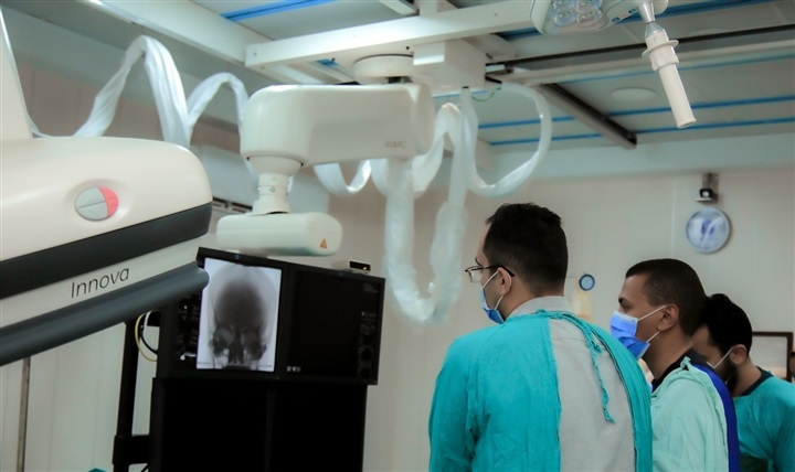نازف بالمخ، وذلك بالتعاون مع فريق القسطرة المخية: الدكتور أحمد البسيوني أستاذ أمراض