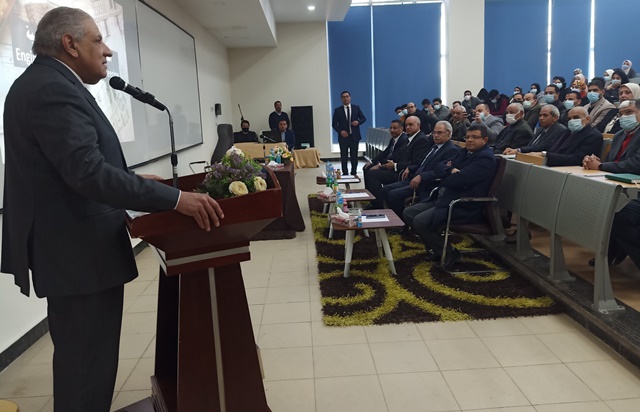 محلب رئيس وزراء مصر الأسبق، في الندوة عن أخلاقيات مهنة "المهندس" لأنها