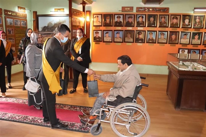 ومصابى العمليات الحربية، وتعريف الطلاب بالقاعة التاريخية بالجمعية ومركز الغسيل الكلوى