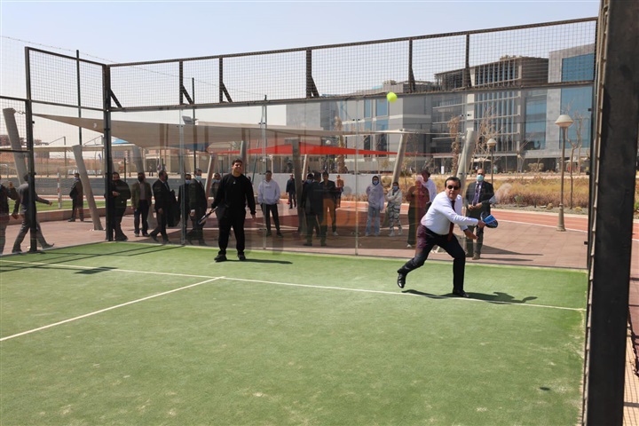 شارك وزير التعليم العالي طلاب جامعة كوفنتري الدولية لعبة"تنس بدل" بجانب