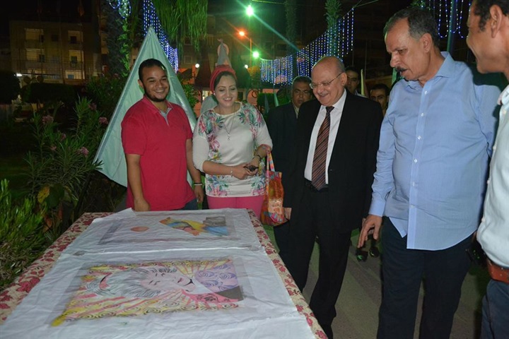 الفنية التي نفذها طلاب المعسكر يرافقه الدكتور عبد الحكيم نور الدين نائب رئيس الجامعة