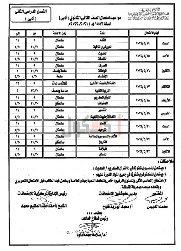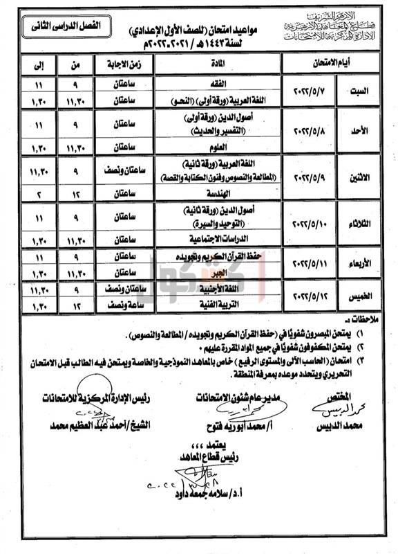 المعاهد الأزهرية تعلن جداول امتحانات الشهادات والنقل 2022