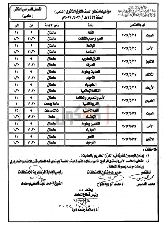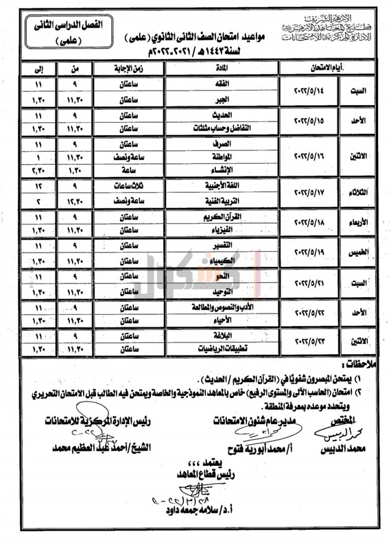 بينما يبدأ طلاب الصفين الأول والثانى الثانوى امتحاناتهم يوم 14 مايو وتنتهى يوم 23 مايو.