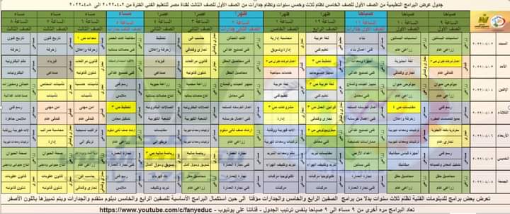 جدول عرض البرامج التعليمية لنظام الـ 5 و3 سنوات عبر قناة مصر للتعليم الفني
