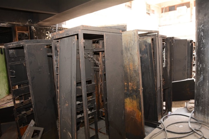 بغرفة المحولات الكهربائية والذى نجم عن احتراق 4 ألواح توزيع جهد ولكن لم يحدث تلفيات