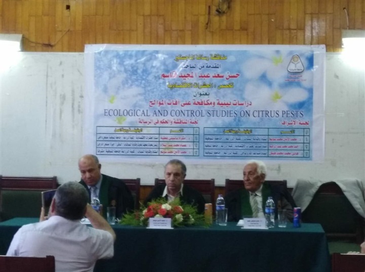 المنوفية مناقشا، والدكتور عصام محمد عبد السلام أستاذ الأكارولوجي معهد بحوث وقاية