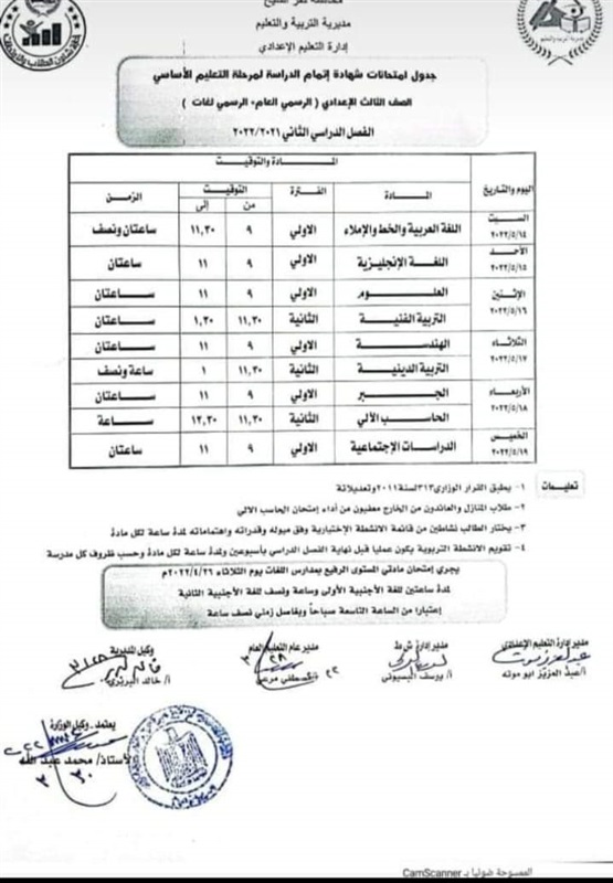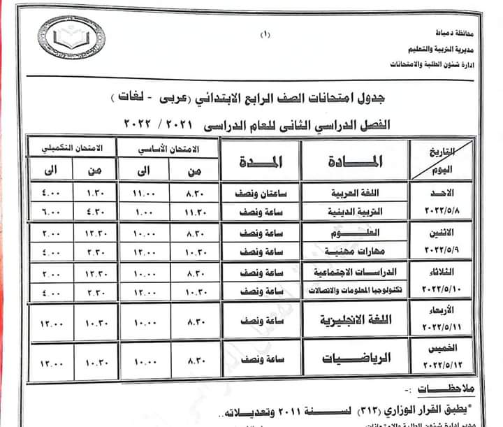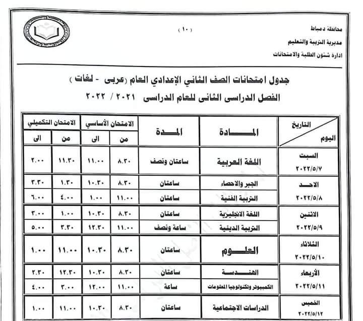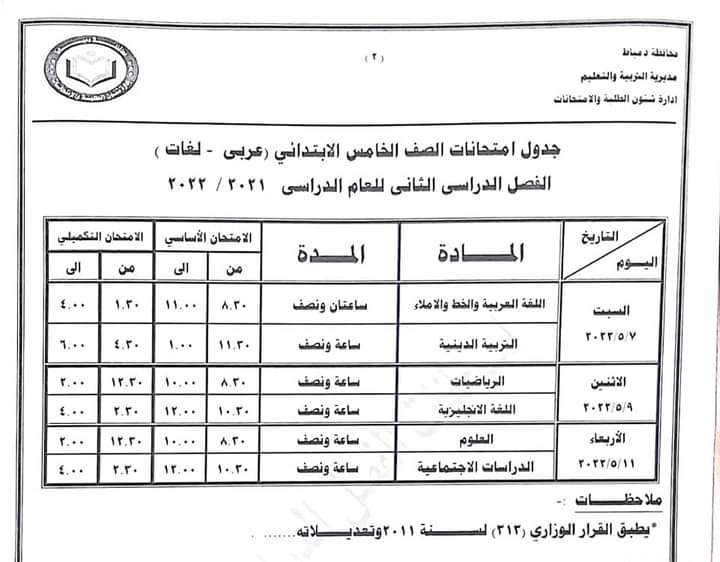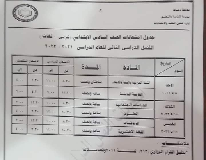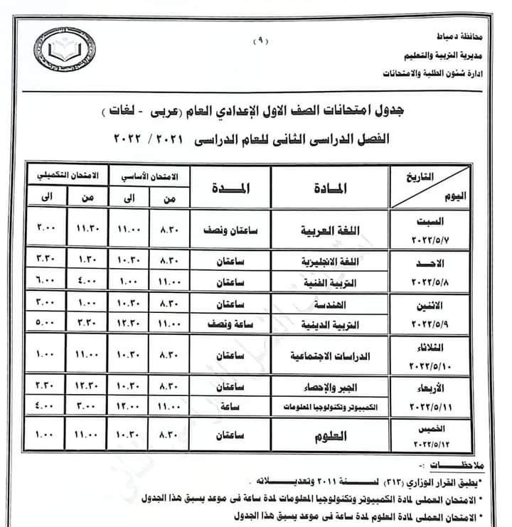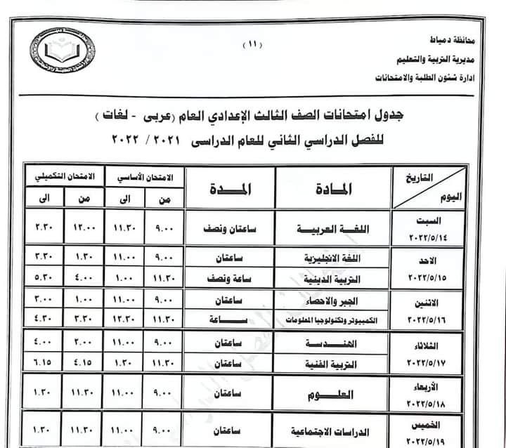 ننشر جداول امتحانات جميع الصفوف بدمياط «صور»