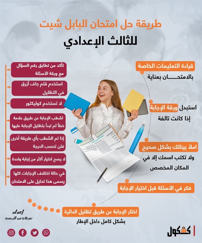 بالإنفوجراف.. طريقة حل امتحان البابل شيت لطلاب الثالث الإعدادي