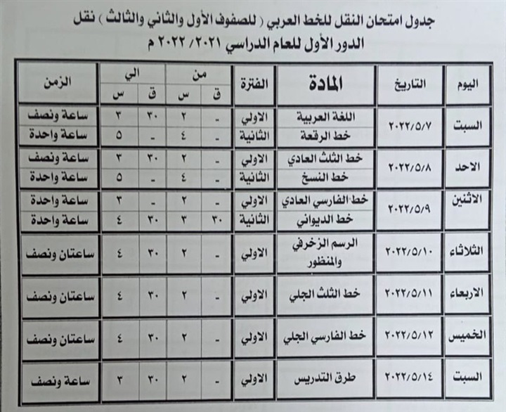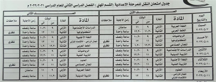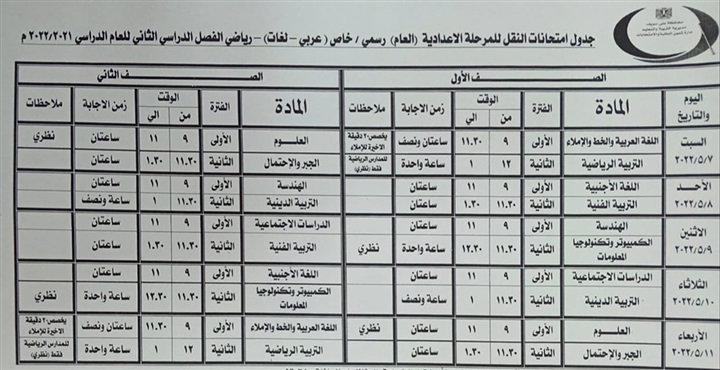 - الصفين الأول و الثانى الإعدادى نقل "من 7 إلى 11 مايو 2022 "