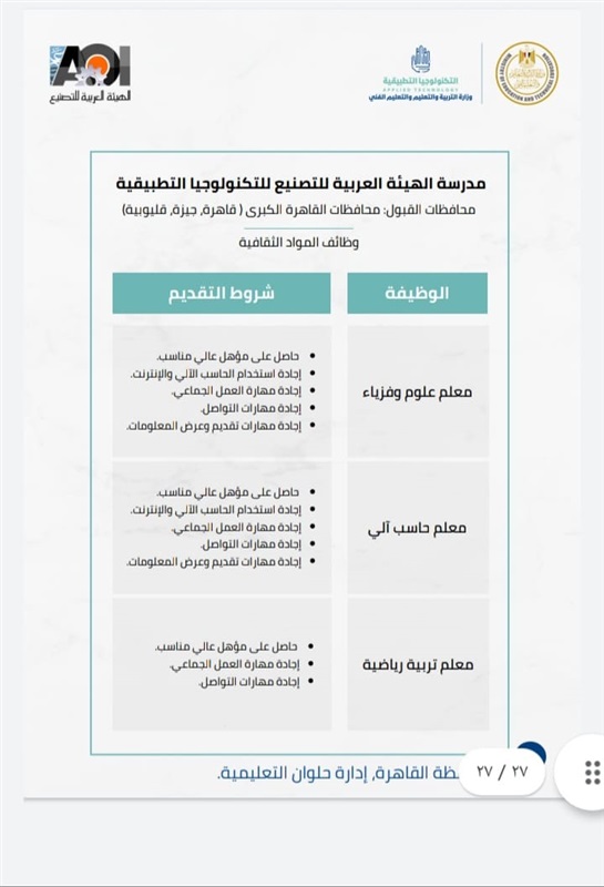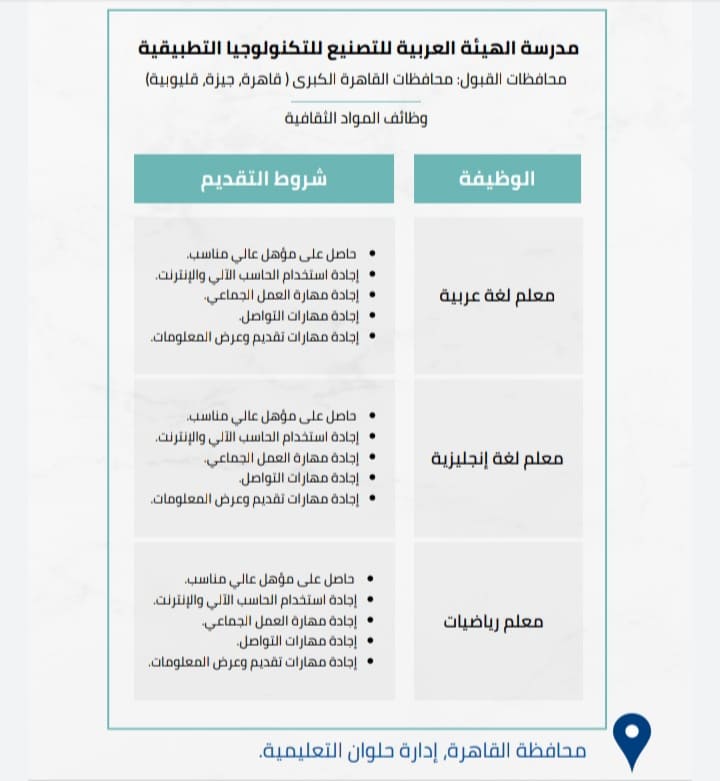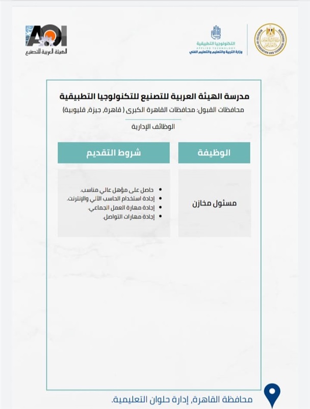 4_ مدرسة الهيئة العربية للتصنيع للتكنولوجيا التطبيقية،