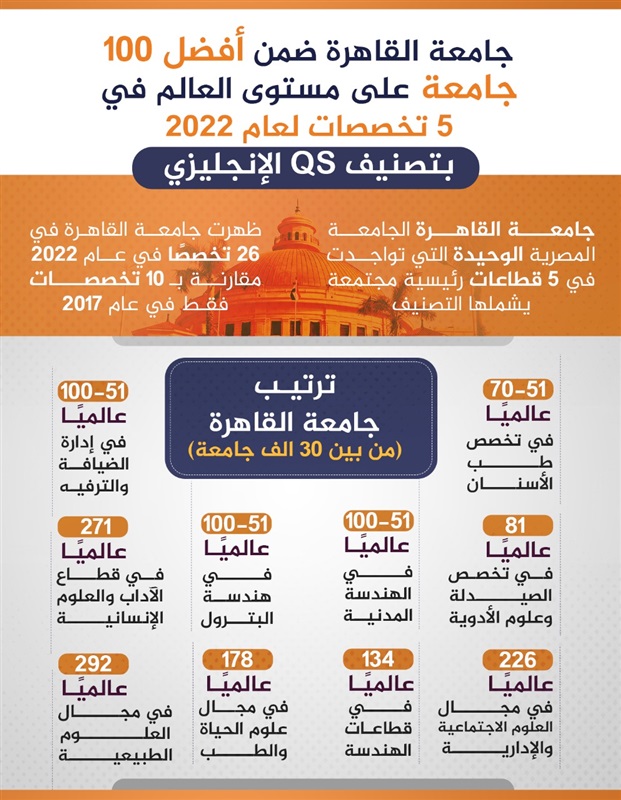 «القاهرة» من أفضل 100 جامعة في تصنيف "QS" البريطاني | انفوجراف