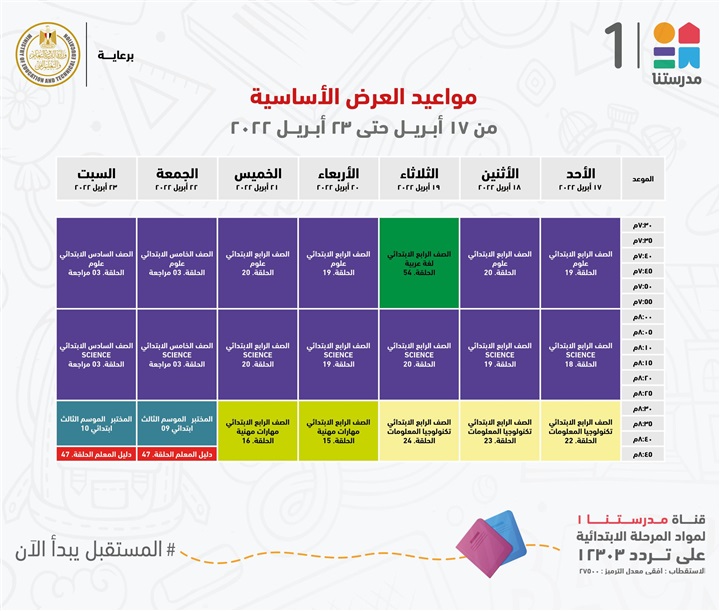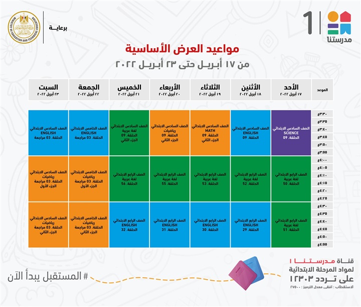 التعليمية "مدرستنا 1" مواعيد عرض البرامج التعليمية للصفوف الابتدائية لهذا