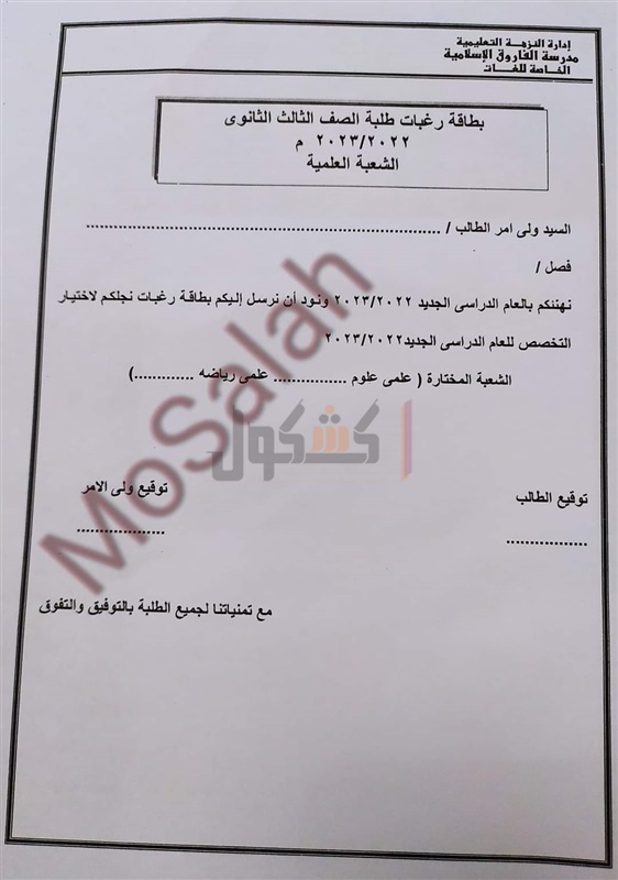 كشفت بطاقة رغبات طلاب الصف الثالث الثانوي العام الشعبة العلمية للعام 2022/2023 في إدارة النزهة التعليمية بمحافظة الإسكندرية، عن استمرار العمل بالتشعيب علمي علوم ورياضيات للعام الدراسي المقبل.
