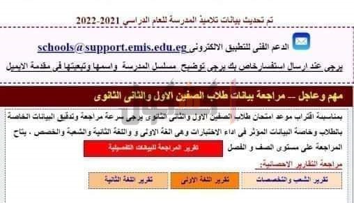 وأشارت إلى أنه يتاح الآن للمدارس الثانوي عام علي استمارة التلميذ تقارير لمراجعة البيانات التالية:
