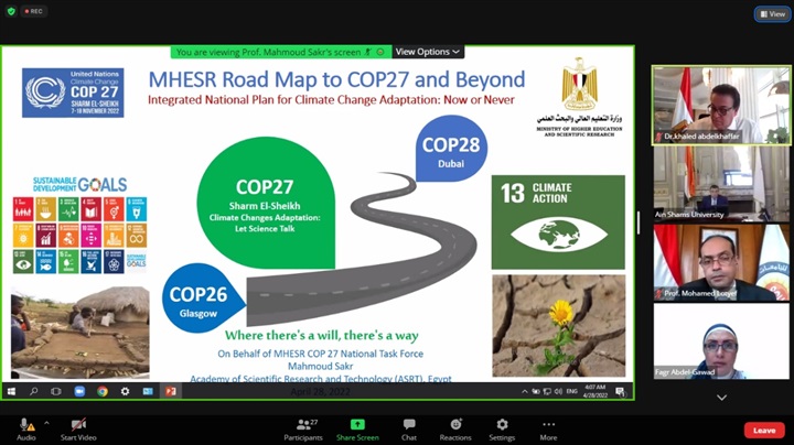 ومن جانبه، استعرض الدكتور محمود صقر رئيس الأكاديمية، النقاط التى تعمل عليها خطة الوزارة للمُشاركة في المؤتمر، والتي تشمل تمثيل جميع المراكز البحثية وتمثيل الأمانة العامة للمجلس الأعلى للجامعات الحكومية ومجلسي الجامعات الخاصة والأهلية، وصناديق تمويل ودعم البحث العلمي لتحقيق التعاون المُشترك بينها، والاتفاق على ورقة عمل مُشتركة فيما يخص كل قضية من قضايا تغيرات المناخ التى تتعرض لها مصر خاصة، ومنها تهديدات الاحتباس الحراري وتهديد الثروة الحيوانية والسمكية، وفحص وتقييم التقارير المقدمة وفتح حوار مجتمعي حول الخطة النهائية، والعمل على إعداد محتوى تعليمي مُعتمد من المجلس الأعلى للجامعات عن تغيرات المناخ، والبدء في تدريسه اعتبارًا من العام الدراسي القادم، وتوجيه الدراسات الاستراتيجية والأبحاث العلمية للبحث في قضايا المناخ والحلول المقترحة لمجابهتها، ودعم المشروعات البحثية في هذا المجال، إلى جانب المُساهمة في الأعمال المُجتمعية التى تقوم بنشر التوعية عن مخاطر وتأثيرات التغيرات المناخية على البيئة والإنسان.