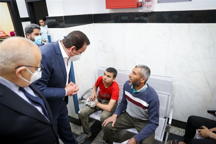 وحرص الوزير خلال جولته على التحدث مع المرضى المُترددين على المستشفى للتأكد من حصولهم على كافة الخدمات الطبية اللازمة لحالتهم الصحية، فضلاً عن التأكد عن رضائهم عن الخدمات الطبية المُقدمة لهم بالمستشفى، مؤكدًا أن رضاء المريض والحفاظ على صحته العامة هو الهدف الأسمى الذي تسعى له الدولة المصرية.