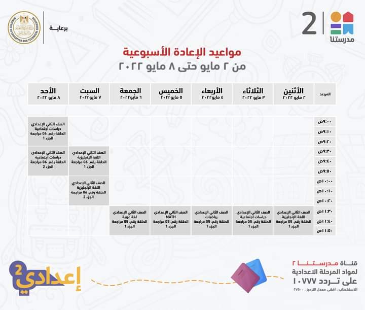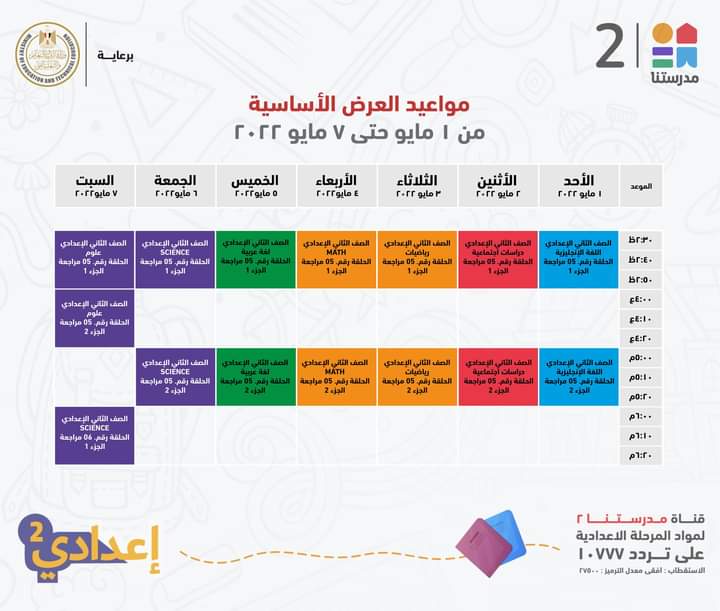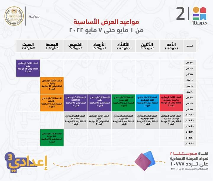 مواعيد البرامج التعليمية للصف الثالث الاعدادي (صور)