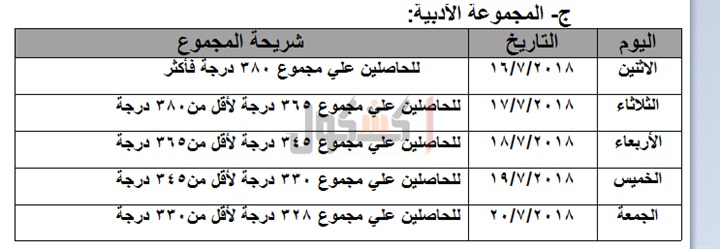 درجة فأكثر أي بنسبة 93.90% فأكثر بعدد طلابي 15267 والشعبة الأدبية، بحد أدنى328