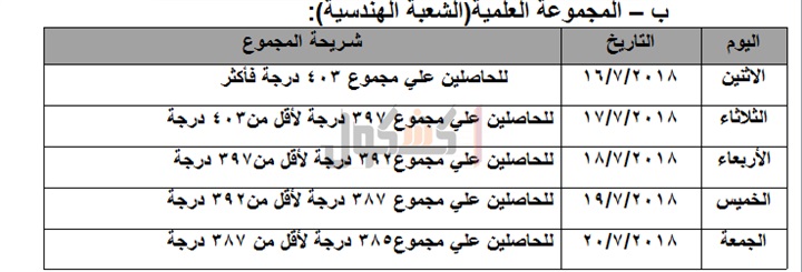 28001 طالب، و الشعبة الهندسية بحد أدنى 385