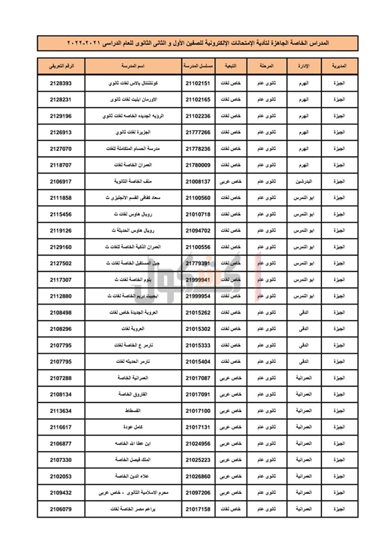 الفني، عن الكشف النهائي لأسماء المدارس الخاصة المجهزة والمعتمدة من الإدارات لعقد