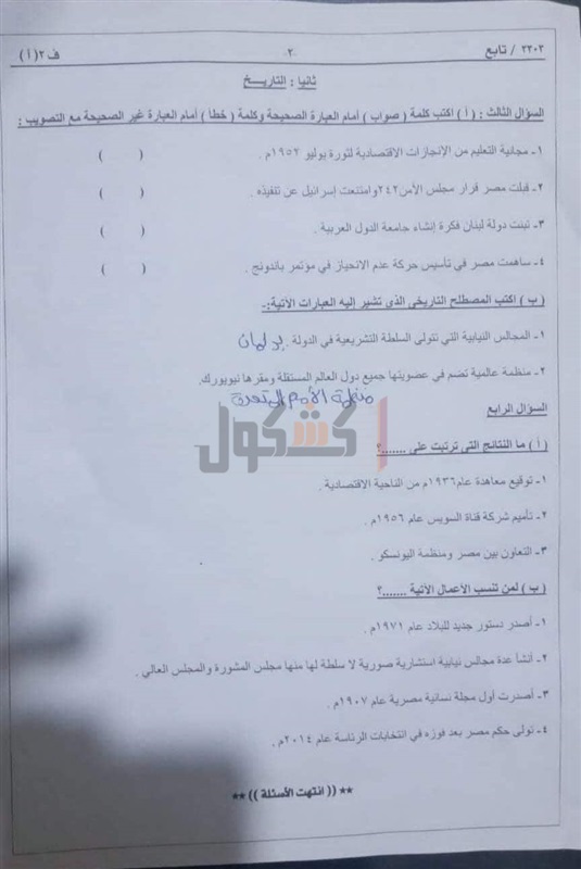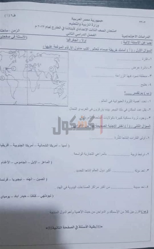 امتحان الدراسات الاجتماعية لثالثة إعدادي بنظام أبناؤنا في الخارج "صور"