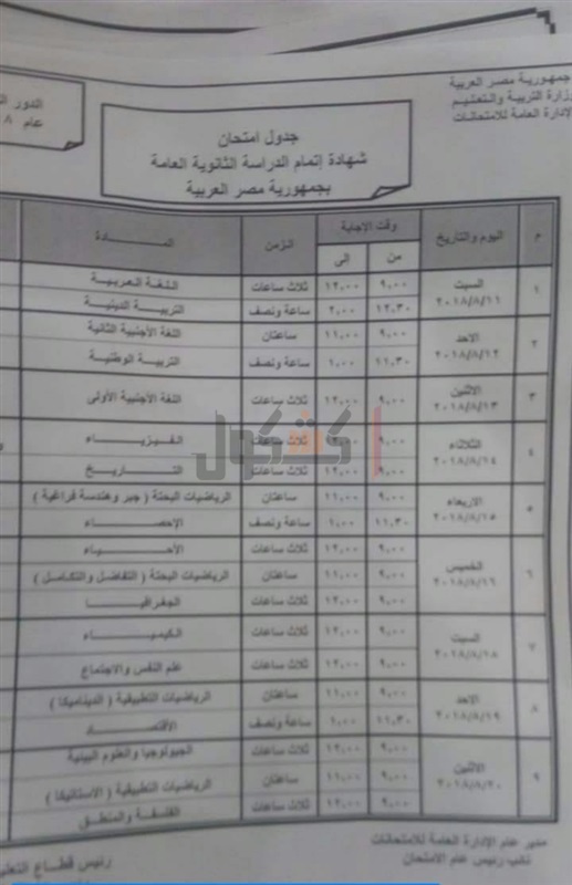 بالصور .. ننشر جدول امتحانات الدور الثاني للثانوية العامة