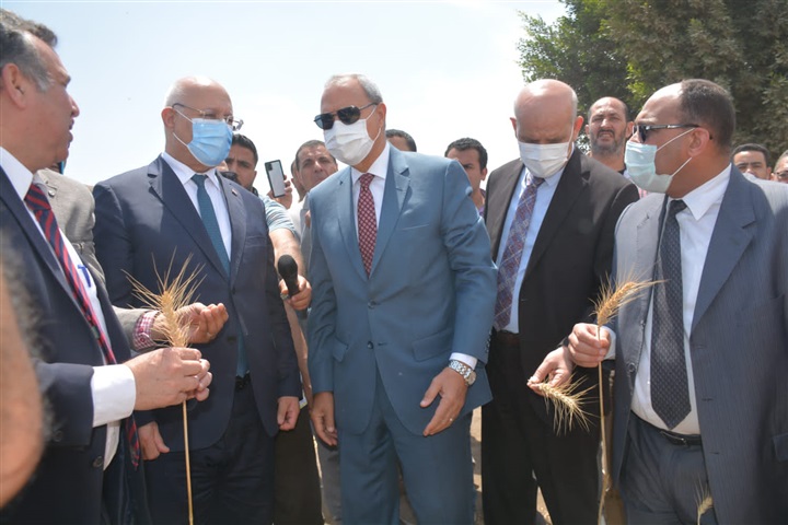 واستمع محافظ القليوبية ورئيس الجامعة إلى شرح تفصيلى من المشرف على قطاع خدمة المجتمع وتنمية البيئة، وعميد الكلية حول موسم حصاد القمح في مزارع الكلية حيث بلغت المساحة المنزرعة بالقمح حوالي 15 فدان.