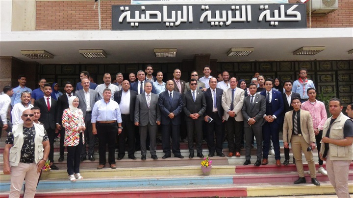 جامعة المنيا مشرفًا، والدكتورة إحسان حسني أحمد أستاذ الإدارة الرياضية المساعد بكلية