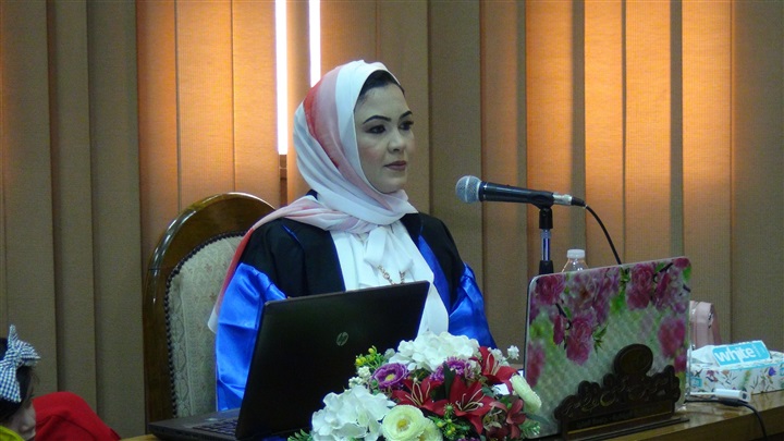 حيث تكونت لجنة المناقشة والحكم على رسالة الباحثة من الدكتور أشرف صبحي
