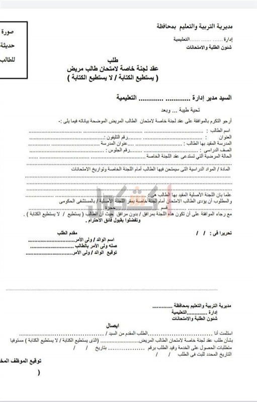 وأشارت الوزارة إلى أنه يتم البت في طلب عقد لجنة خاصة لامتحام طالب مريض وفقا للتوقيتات التالية: