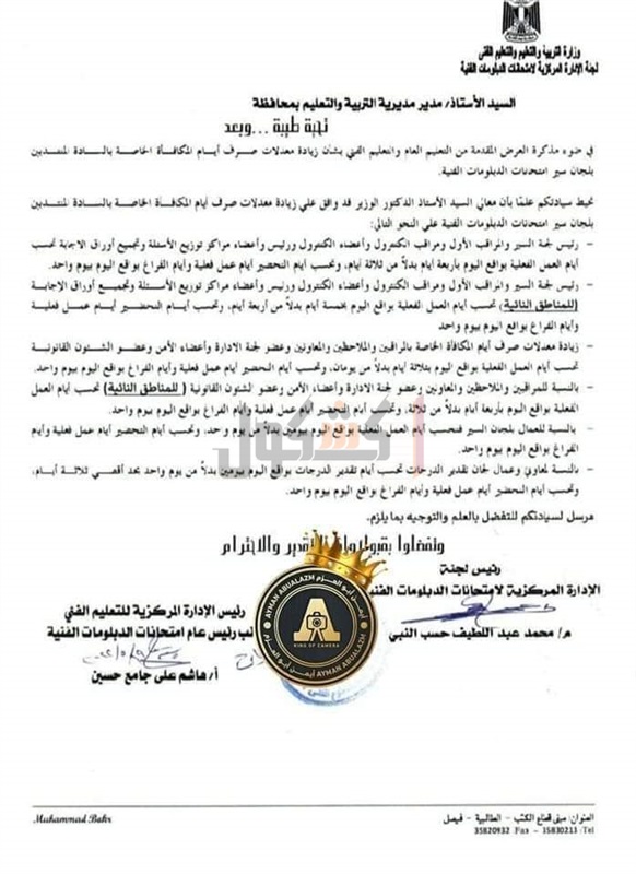 عاجل.. زيادة مكافأة امتحانات المشاركين بامتحانات الدبلومات الفنية 2022