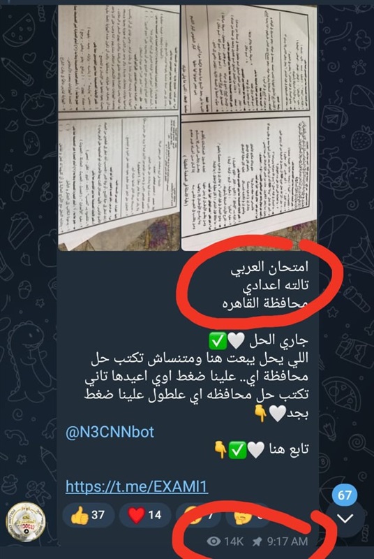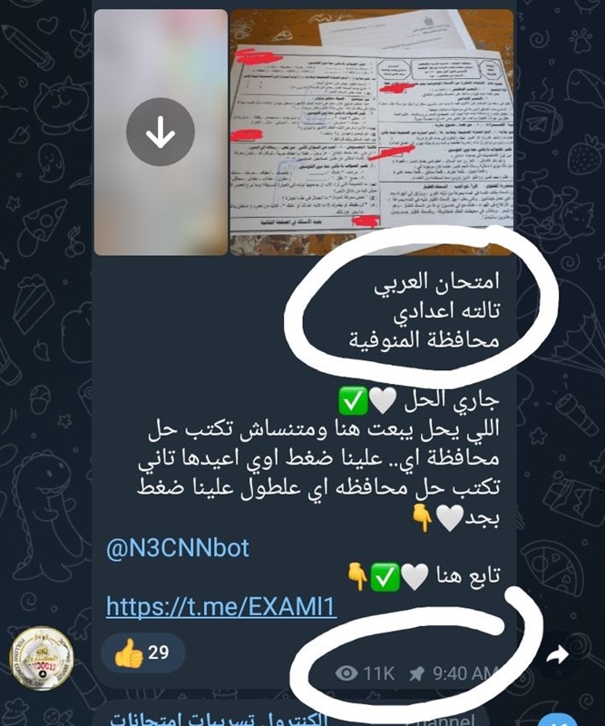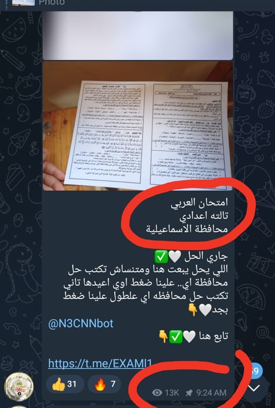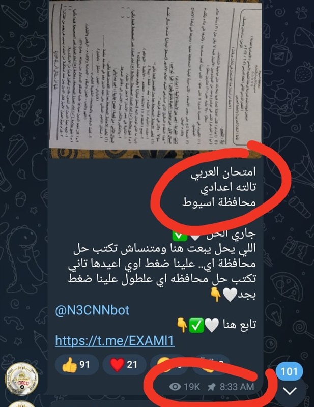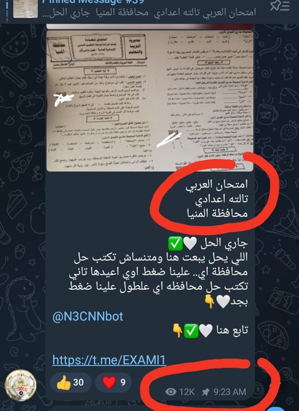 بجروبات الغش الالكتروني بتطبيق التليجرام بتوقيت نزولها سواء قبل بدء اللجان أو