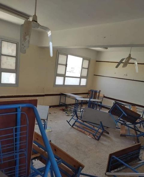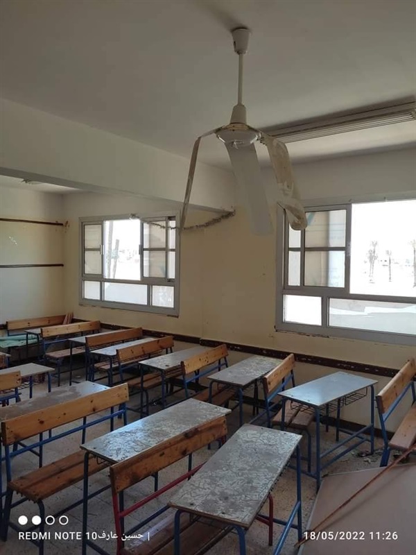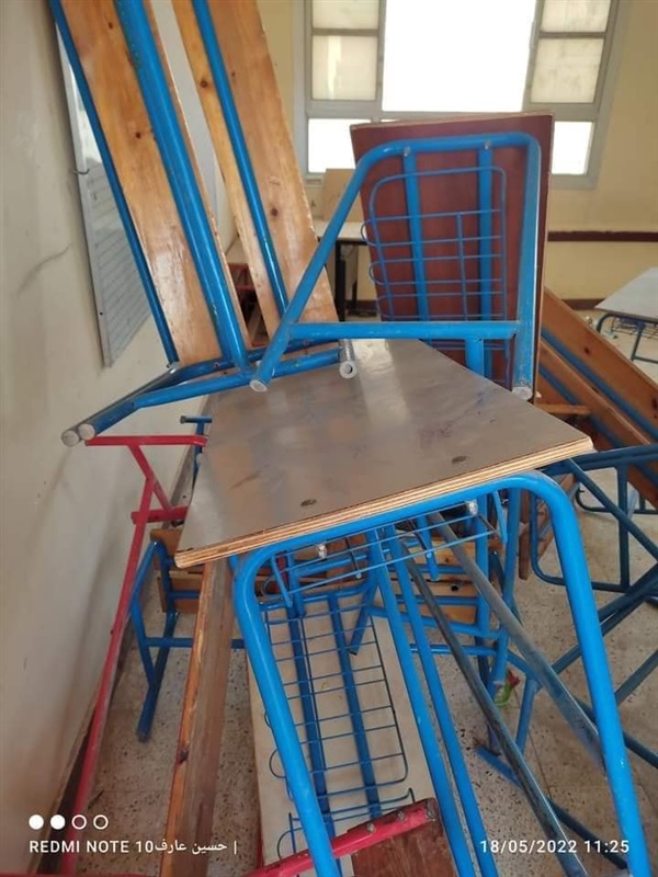 قام طلاب الشهادة الاعدادية، تكسير جميع المقاعد المدرسية والمراوح وتقطيع