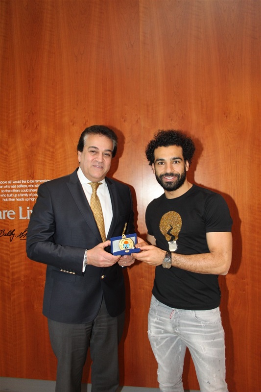 زار الدكتور خالد عبدالغفار وزير التعليم العالي والبحث العلمي نجم المنتخب المصرى ولاعب نادى ليفربول الإنجليزي محمد صلاح في مقر نادي ليفربول المحترف به حاليا، وذلك على هامش زيارته لجامعة ليفربول البريطانية بدعوة من رئيس الجامعة للمشاركة في المنتدى العالمي للتعليم الذي يقام خلال الفترة من 21 -26 يناير 2018 ، وذلك لتهنئته بالفوز بجائزة أحسن لاعب في إفريقيا، وتقديم ميدالية التكريم من وزارة التعليم العالى والبحث العلمى تعبيرا عن تقدير شباب الجامعات المصرية للاعب القدوة الذي أصبح مثالا للاجتهاد والعمل والأخلاق، حتى أصبح أيقونة الشباب المصري وخير سفير لمصر في مسابقات الدوري بالدول الأوروبية.