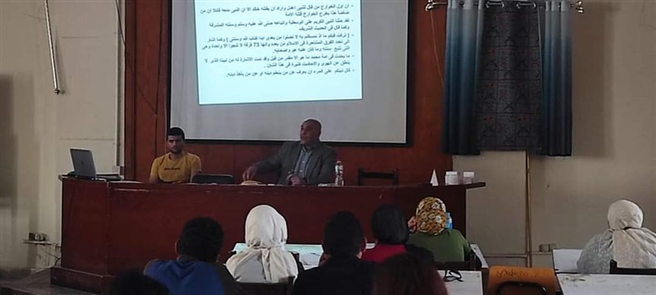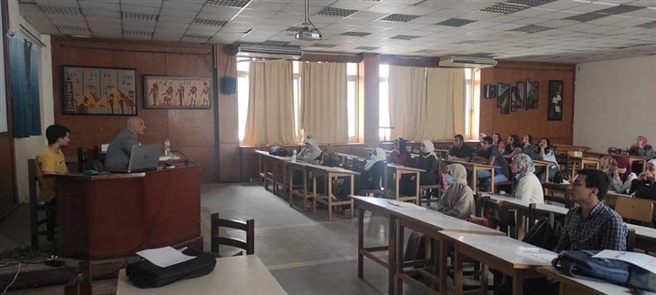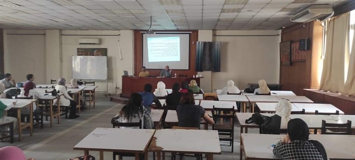 ألقى الندوة الرائد زكريا محي الدين محمد رائد قوات مسلحة بالمعاش ومدرب ثقافات الحياة، بقاعة التصميم بقسم الغزل والنسيج.