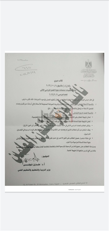 أصدر الدكتور طارق شوقي وزير التربية والتعليم والتعليم الفني تعليمات رسمية لمديريات التربية والتعليم ، شدد خلالها على ضرورة الالتزام بشرورط الصياغة الصحيحة لاسئلة امتحانات الدور الثاني في جميع الصفوف الدراسية ، وعدم تضمين ااسئلة ما يتعلق بالقضايا السياسية او قيادات الدولة وغيرها .