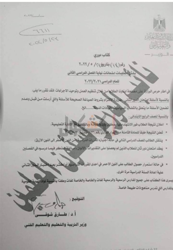 شوقي وزير التربية والتعليم والتعليم الفني تعليمات رسمية لمديريات التربية والتعليم،