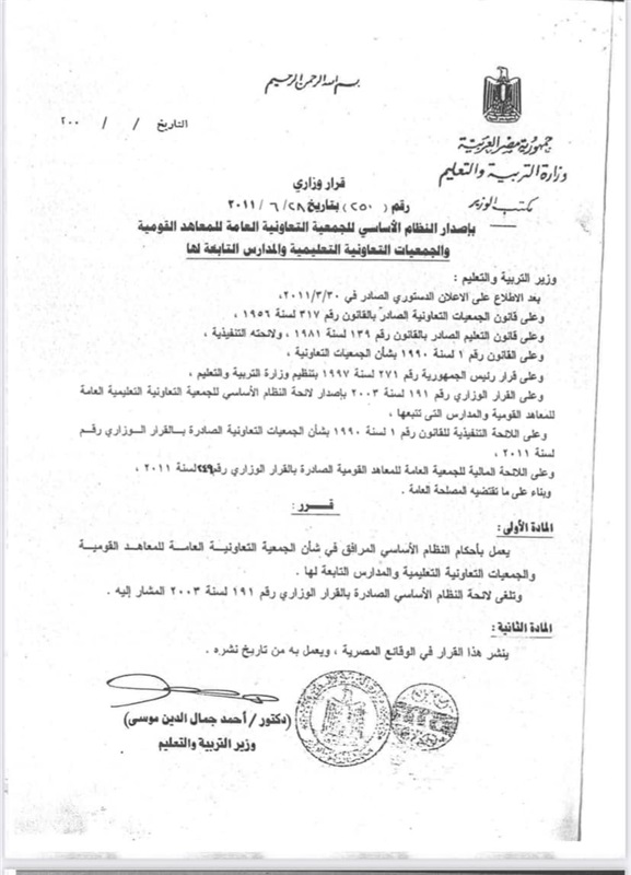 قال محمد عبد الهادي رئيس مجلس إدارة المعاهد القومية، إن هذا الصك ليس بدعة وليس بجديد وإنما هو عبارة عن قرار وزارى رقم ٢٥٠ بتاريخ ٢٨/٦ /٢٠١١، وتم تطبيقه فى نفس عام صدور القرار حتى الآن، حيث يقوم ولي الأمر بوضع وديعة فى البنك عن التحاق نجله بالمدرسة على أن يستردها عند تركه للمدرسة، مشيرا أن تلك الوديعة يتم دفعها مرة واحدة فقط خلال سنوات دراسة الطالب بالمدرسة وهي تختلف عن المصروفات الدراسية المقررة علي الطلاب سنويا.