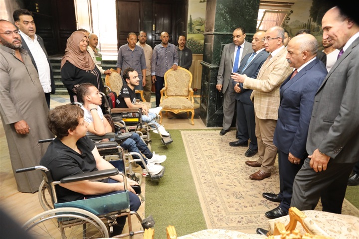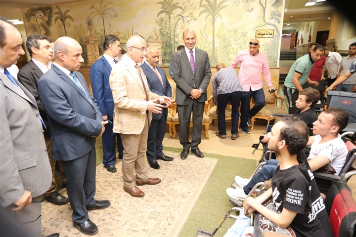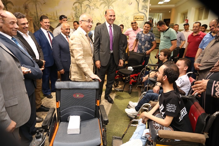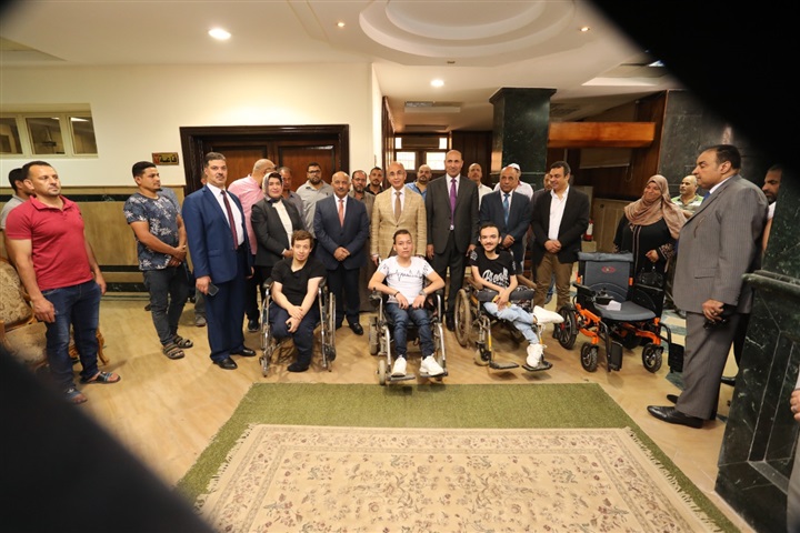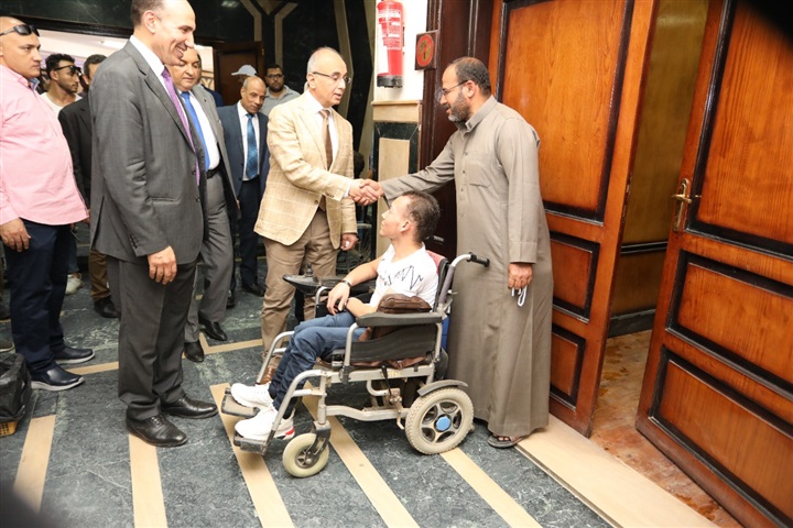 رئيس جامعة الزقازيق يسلم كراسى متحركة لذوي الهمم بكلية التجارة